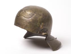 Wangenklappen, getriebene Augenbrauen oder Nackenschirmen (Winkel).